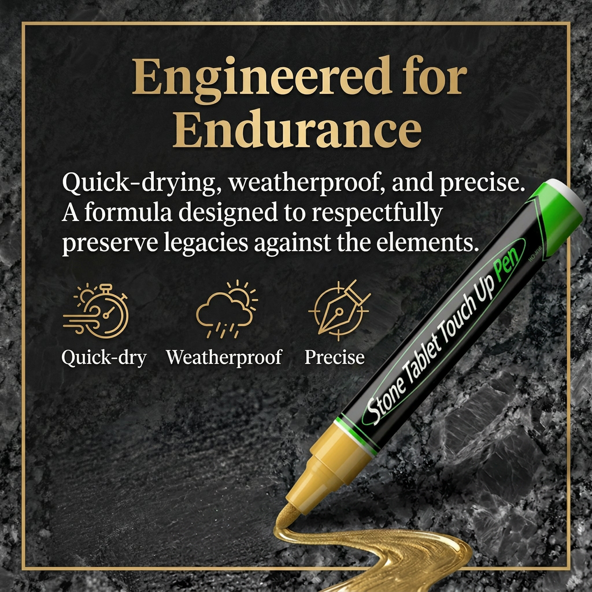 Designed specifically for outdoor use, this restoration pen offers waterproof and weather-resistant performance,helping maintain long-lasting color even under exposure to rain, sun, and environmental elements. It is an ideal solution for cemetery maintenance, monument restoration,and outdoor stone surface touch-ups.