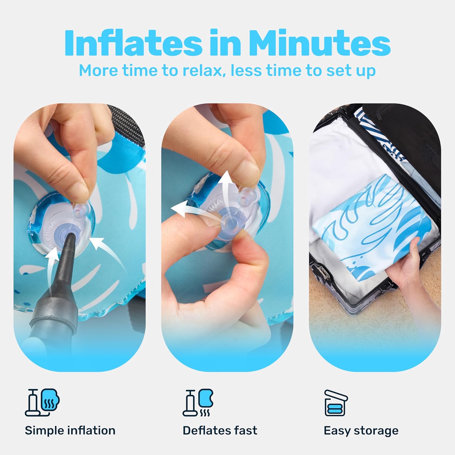 ULTRA-LIGHTWEIGHT & SPACE-SAVING - At just 260g and 76x35x60cm, this chair folds into a compact carry bag. Effortlessly portable for vacations, picnics, or spontaneous pool days. No heavy lifting—inflate, float, and unwind without sacrificing precious luggage space or storage.