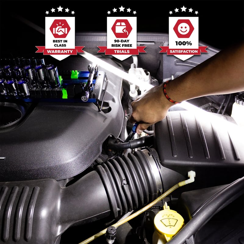 A 20" flexible LED strip lights up tight, hidden areas—perfect for engine bays, inspections, and more.