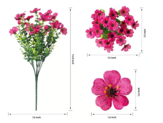 Made from 100% silk cloth+plastic, these flowers are weather-resistant and maintain vibrant colors even under direct sunlight.